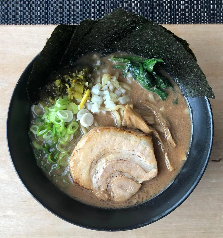 とりわけ、海苔をスープに浸すと衝撃の旨さ。刻み玉ねぎやほうれん草、高菜で味変するのも楽しい。