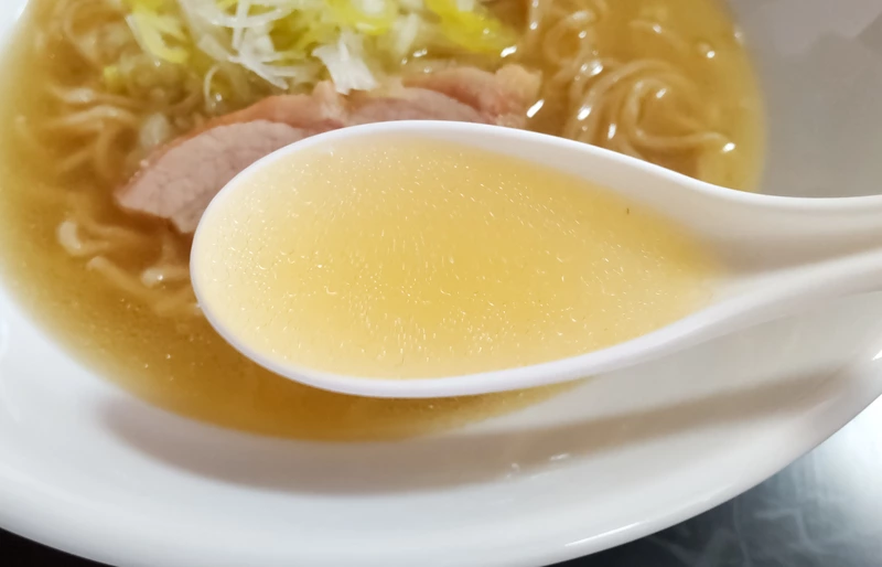 ひと啜りすると鶏の円やかな風味と干し、節、海産の旨味風味。