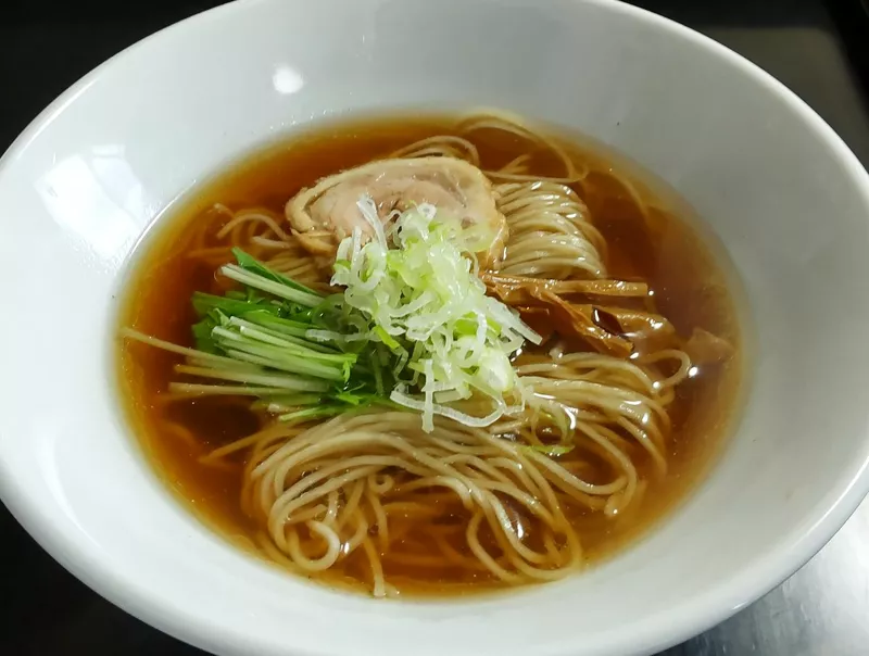秋刀魚をはじめとした魚介、地元の南部どりや豚の動物系の旨味が混ざり合い、凝縮された黄金スープ。カエシの醤油感が強く主張をした後に、出汁のすっきりとした味わいが全体を包み込み飲み干せるほどだ。魚臭さは一切なく誰もが親しみを持てる優しい味わい。緻密な計算で絶妙なバランスが保たれたハイクオリティな仕上がりはさすがの一言。