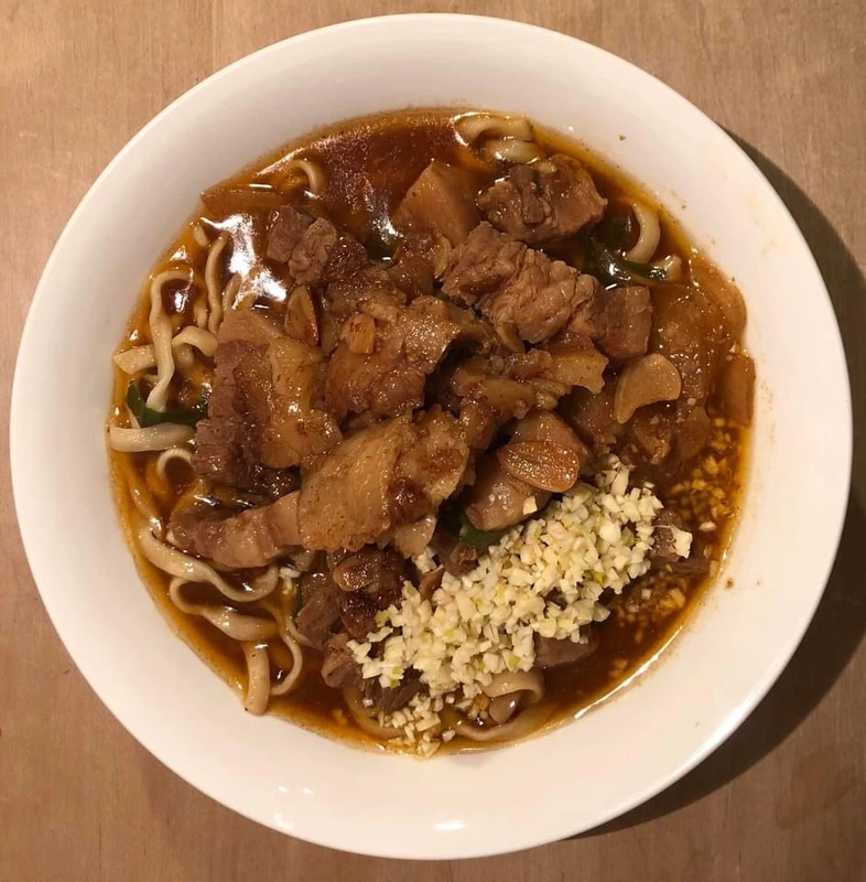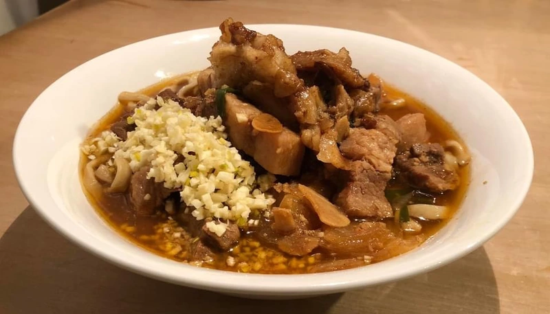 店主こだわりの自家製極太麺は、二郎顔負けのワシワシとした歯応えが特徴!平たく角ばった麺は、濃厚なスープをたっぷりと吸い上げ、豊かな小麦の香りとともに口の中で様々な化学反応を楽しませてくれる。少し固めに茹であげることで、ワシワシとした食感は更に主張を増し、まさに無限の可能性を感じさせてくれる!宅麺の中でもトップレベルのたっぷり具材が入っており、スープ・麺・具材、全ての満足度が高い、不動の人気を誇る一杯だ。