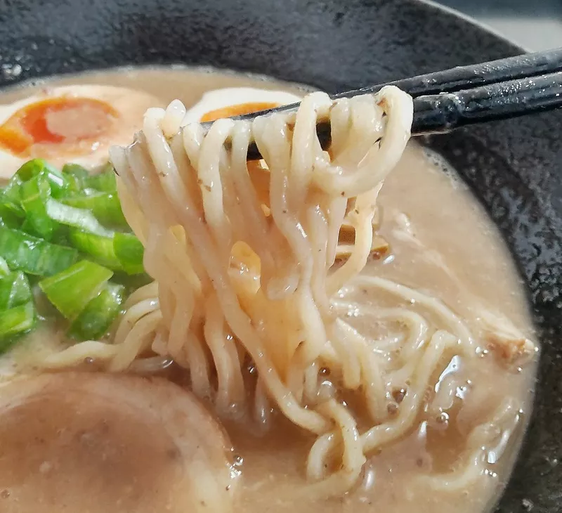 レンゲが立つのではないか、と思うほどにドロドロ粘度抜群の豚骨スープ。ど濃厚ど真ん中の逸品は、意外なほどに後味はスッキリ。丁寧に時間をかけながら抽出した豚の出汁が故に、嫌な臭さ、後味にはならず、見た目に反してスッキリとした味わいとなっている。海苔、白米との相性は抜群で、ぜひともご家庭でご用意の上、お楽しみいただきたい。