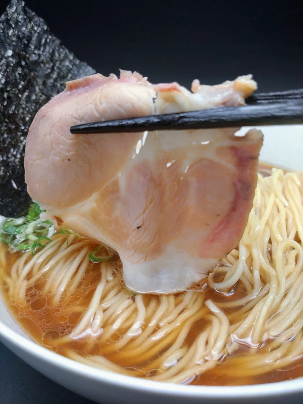 通常の調理方法だとチャーシューはスープの湯煎過程で硬くなり、メンマに使われている黒胡椒もスープに落ちてしまい、