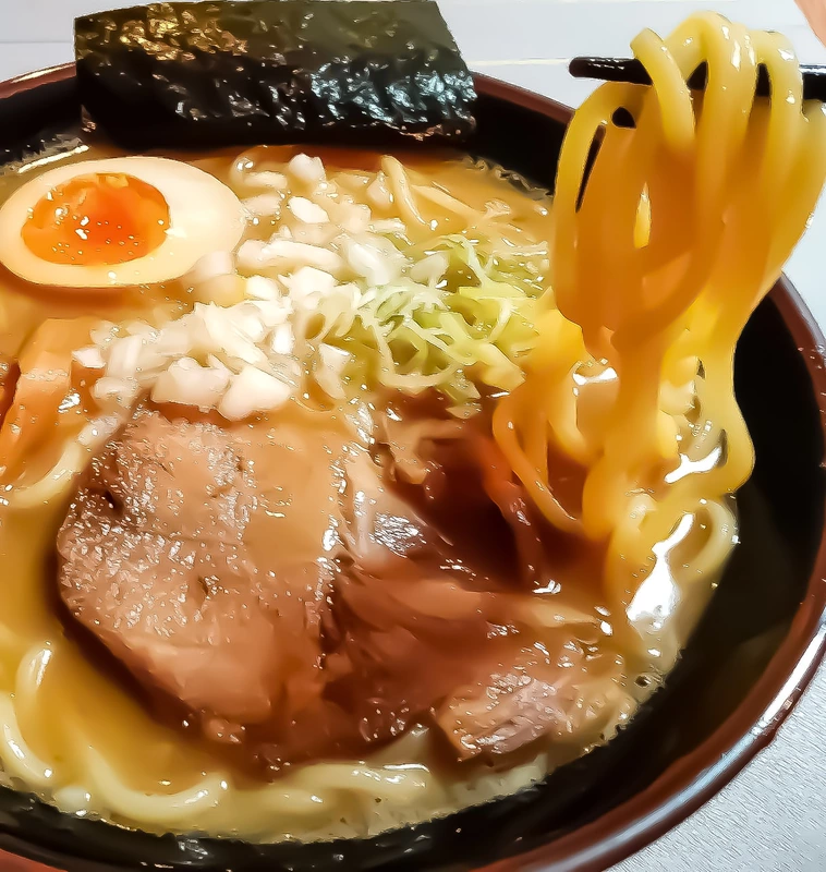 大門の人気が絶えない理由の一つに、その自家製中太麺がある。この一杯のために選ばれた特製の麺は、まさに理想的な存在。しっかりと噛み応えがありながら、もちもちとした弾力で口内を刺激する。口の中で広がる小麦の風味は、一口目で我々の心をとらえて離さない。長さは少し長めで、しっかりとスープを持ち上げ最高のチームを作り出す。ズルズルと進むその手は止まらない。流石、納得のクオリティ、大門食品である。