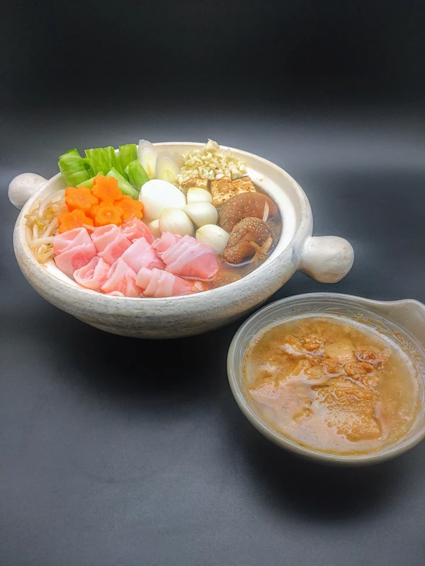付属のブタカスアブラは鍋に入れるもよし、別皿にして具をくぐらせるもよし、