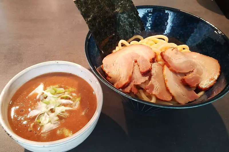 初購入。オーソドックスのつけ汁だが、鰹オイルが良い塩梅。麺はつるっとしており絡みも十分。チャーシューは4枚付いてますが、ちと安っぽさを感じます。全体的に上手にまとまっており、美味しかったです!