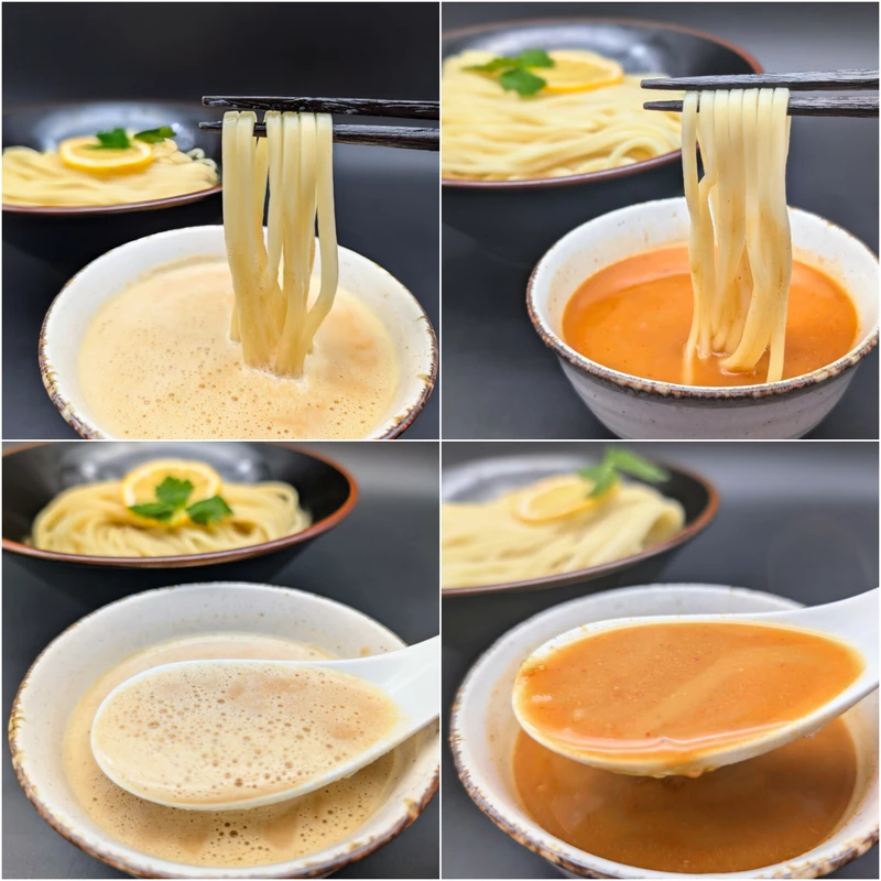 スープはトロトロに乳化した泡系鶏白湯で、実店舗ではブレンダーで泡立ててから提供されます。