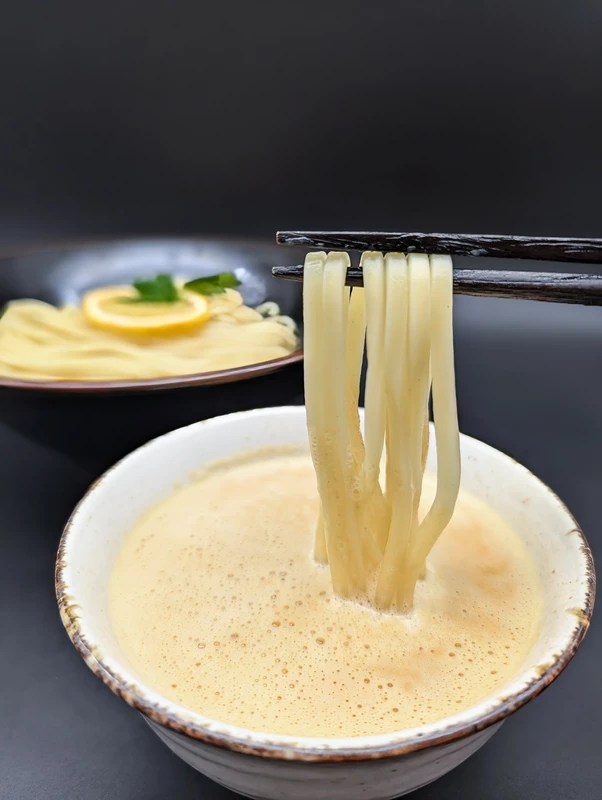 塩分濃度は約1.9%とつけ麺としてはやや低めですが、泡状にする事で麺にしっかりと絡み、程良い塩梅に感じられるようになっています。