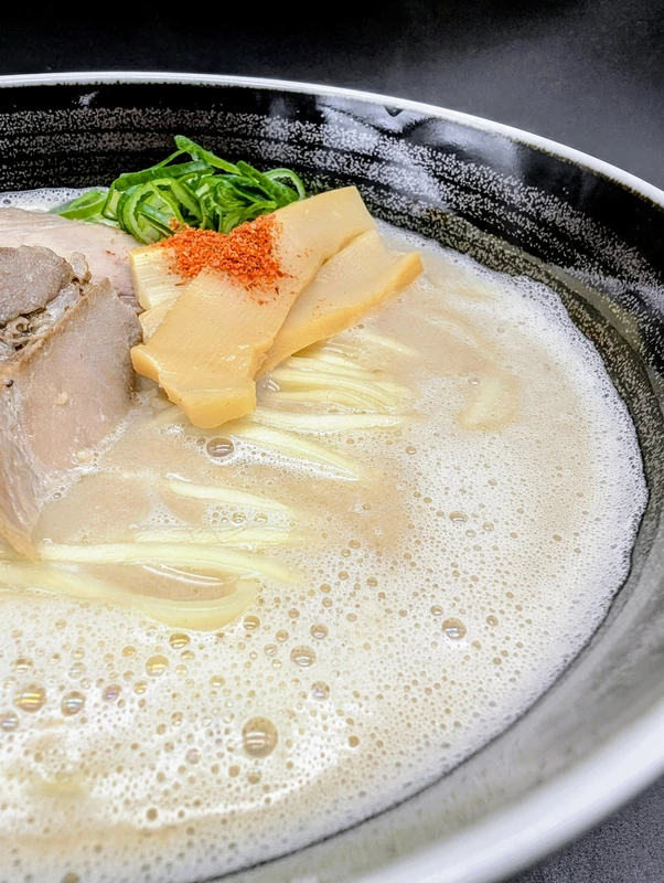 トロトロの泡々で口当たりまろやかな濃厚鶏白湯ですが、見た目よりも脂分は控え目で、飲み口がよく、最後までスルスルと頂けます。