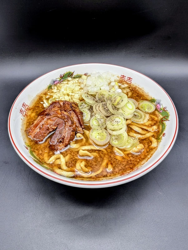 またブラックとして再現度を高めるのであれば、やや厚めの長ネギスライスをトッピングして、ブラックペッパーもバッサバッサと振りかけましょう。