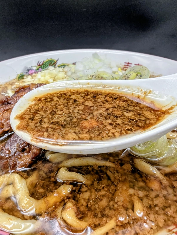 塩分濃度は約2.2%と濃口ではあるものの、大喜ほどの強い塩辛さはなく、背脂の甘味もあるため、比較的食べやすいようなチューニングとなっています。