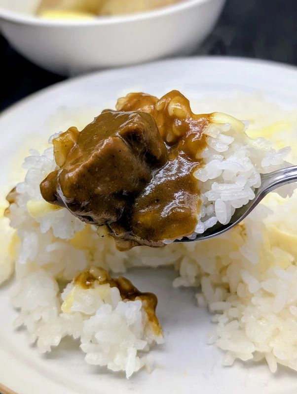 欧風カレー初体験の方は甘口に感じるかもしれませんが、このフルーティな甘みもボンディ系欧風カレーの個性の1つとも言えます。