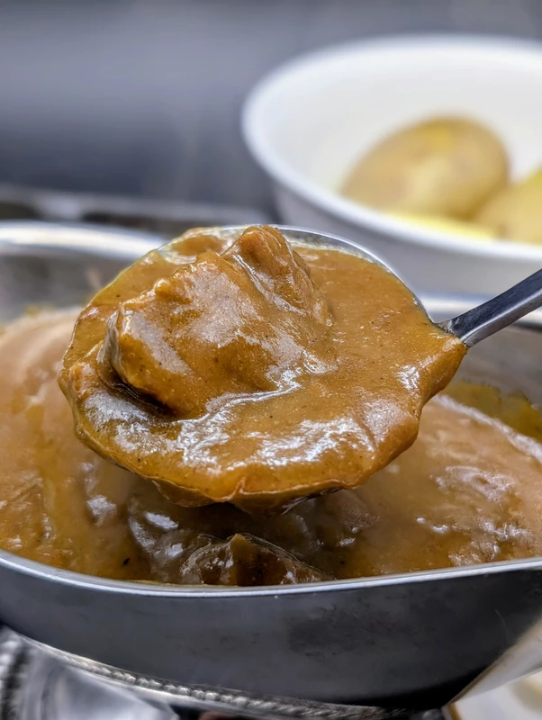 継ぎ足しによる熟成感のあるコクと旨味、ブラウンルーと乳脂肪のドロっと滑らかな口当たり、