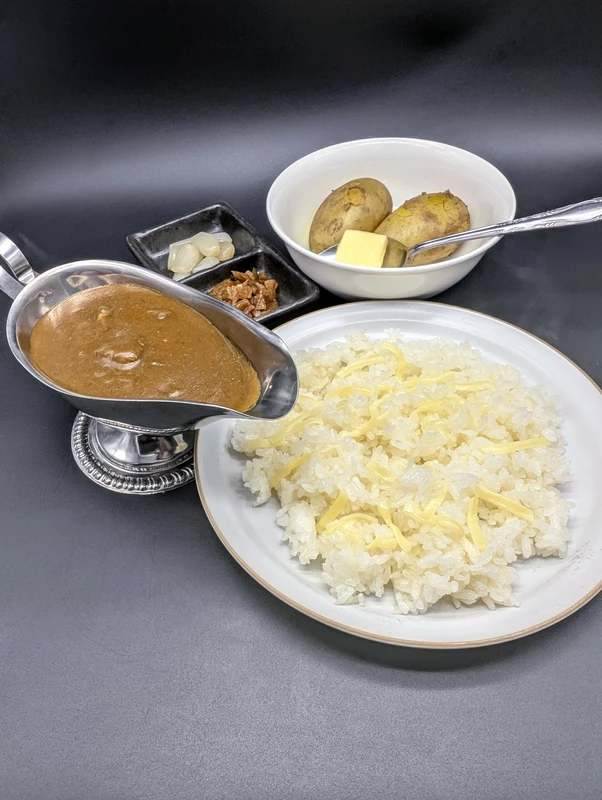 なので作る際にはメークインにバターを添え、ライスの上にはゴーダチーズを散らして、欧風カレースタイルをしっかりと再現して楽しんで欲しい、という気持ちはあります笑
