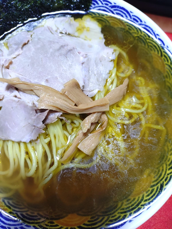 丼に注いだ瞬間、澄み切ったスープの美しさに息をのむ。透き通った黄金色のスープの表面に、油の膜が静かにゆらめき、レンゲを入れた途端に紫蘇の香りがふわっと立ち上がる。その香りは派手さこそないものの、まるで上質な和食の一品を前にしたときのような静謐さを感じさせます。