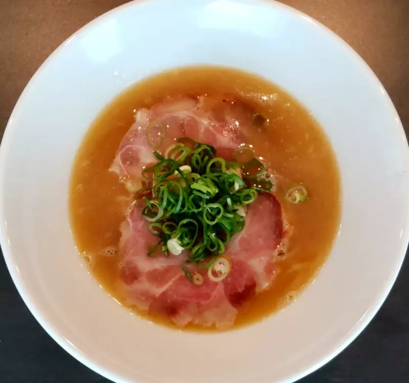 山椒の香り漂うスープは動物系がベースながら口中に帆立の旨味が広がり完飲出来る美味しさです。極細ストレート麺は喉越し良く、2枚の豚チャーシューは薄切りながら肉の旨味が感じられ、座布団メンマは程良い歯応えがあり味付けも絶妙です。おすすめトッピングの九条ネキは必須です。店主のワンポイントアドバイスに従って山椒を振りかけるとグッと味が引き締ります。上品な和食のようでまた食べたくなる一杯です。是非再販を熱望します。