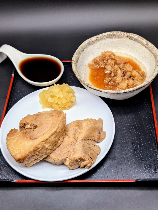 ホロギュチのウデ肉とブリブリのバラロールが1枚ずつで、どちらも筋繊維に適度な反発力があり、角煮のような軟らかフワトロタイプではありませんが、