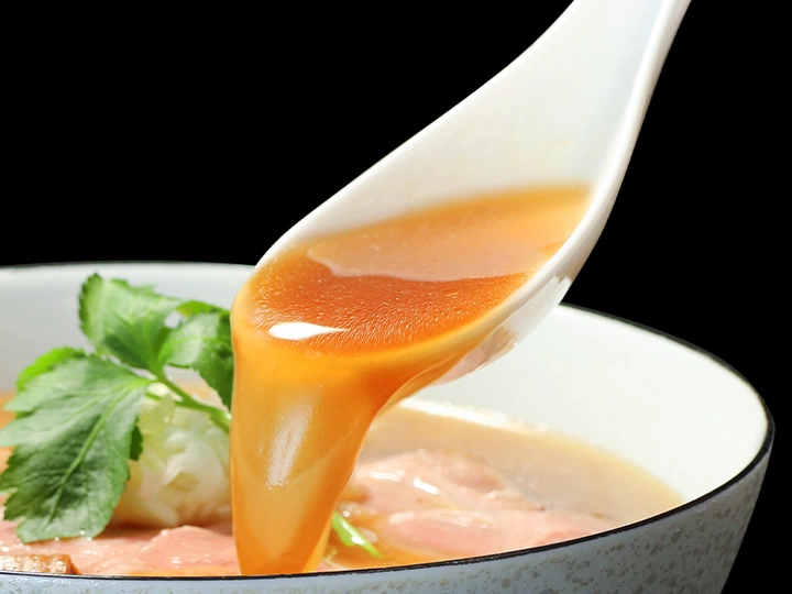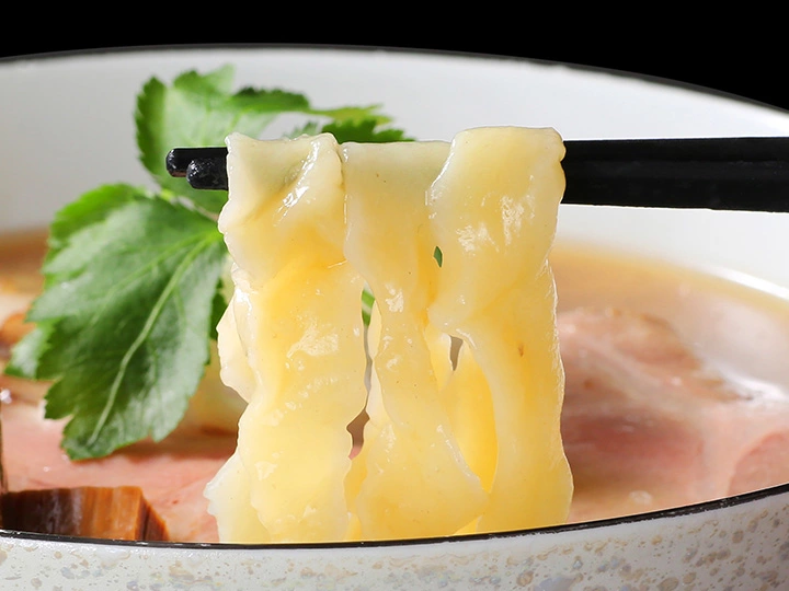 麺がこの一杯の「主役」と言っても過言ではないのは、どんぶりを見れば明らか。もちもち、ちゅるちゅるの麺が勢いよく口に運ばれる感覚は「快感」他ならない。加水率が高めでなめらかな麺は、スープをしっかりと絡み付け、溶け込むかのような一体感を生み出す。それでいてしっかりとした小麦の風味や、コシを感じられるのは、なんとうどん粉である「麺祭」を使用し手打ちで製麺しているから。一口運ぶたびに店主のこだわり、丹念を噛み締めることができる。