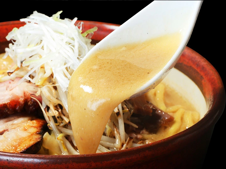 じっくりと炊かれた動物系スープの力強さに、香味野菜のエキスが溶け出したスープは香り高く、複雑な旨み・甘みが口いっぱいに広がり、濃厚な味噌ラーメン全体をどっしりと支える。数種類の味噌をブレンドしたクリーミーな味噌はコク深く、どこまでも続く余韻が特徴的。ニンニクや生姜の香りも相まって、食べている途中でも食欲が駆り立てられる、都内屈指の最強味噌ラーメンをお楽しみいただきたい。