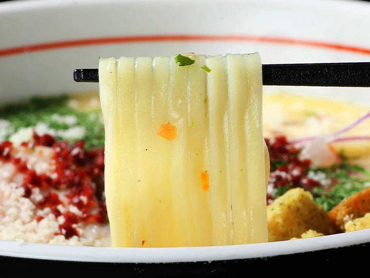 特級鶏蕎麦 龍介の代名詞とも言える鶏の旨みを極限まで凝縮させた濃厚鶏白湯スープに、しじみがベースのクラムチャウダーを融合させた新感覚ラーメン!鶏の旨みにしじみの滋味深さが合わさる事で、どこかホッとする誰からも愛される味わいに。平打ち細麺との相性も抜群で、啜るたびに小麦の旨み香り、鶏白湯のコク、しじみの旨みを味わう事ができる。付属の具材は、丁寧に低温調理が施された絶品鶏チャーシューとベーコンチップ。ベーコンチップが加わる事で、香ばしさ、コク、食感にアクセントが加わりワンランク上のラーメンへ!