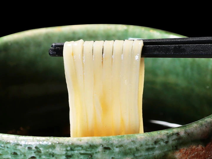 喉越しよく、小麦の甘みが詰まった自家製の中細ストレート麺!