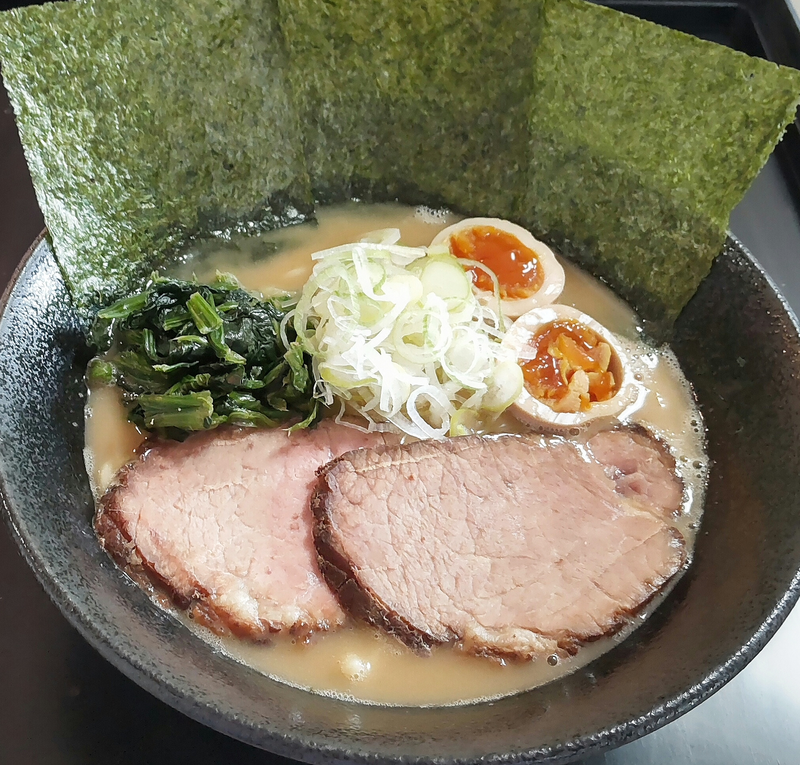 ザ・家系とも言えるスープは、濃厚でコクがありながら、飲み干せるほどスッキリとしている奇跡のスープ。それは、豚骨の骨や髄に詰まったエキスを余すことなく抽出した極上トンコツスープに。命のエキスとも言える秘伝のタレをさらにブラッシュアップし、特殊な製法で作られた鶏油を合わせて出来た逸品だからこそ出せる味わい。特注のパツンっとはじけるような平打ち麺を合わせた、ド直球な横浜家系ラーメンである。