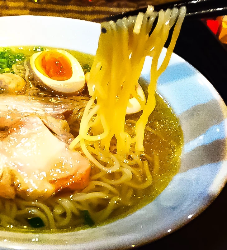 ラーメン界において数々の賞を総ナメにしてきた「元」の鶏塩ラーメンは、褐色に澄んだ透明感のあるスープの見た目からは想像できない程、しっかりと出汁の効いた一杯。淡麗なのに、奥深い味わいをご堪能ください。