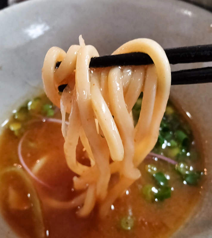 すごく美味しい!ちょうどいい濃さに、しっかりとした麺でした。