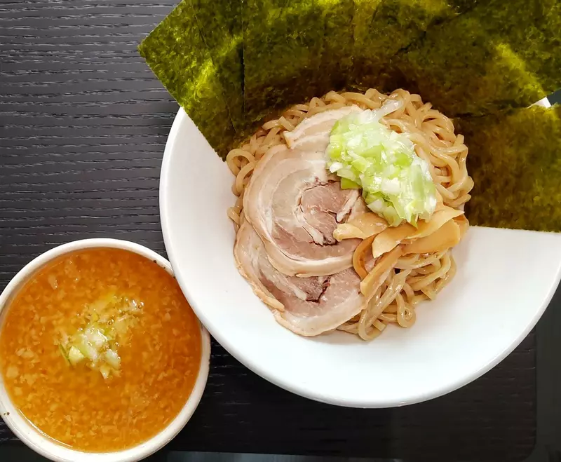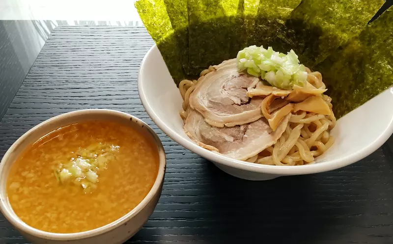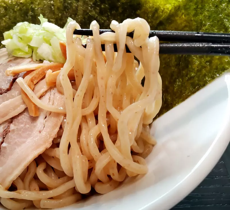 背脂の効いた甘味ある漬け汁、コシのある麺。