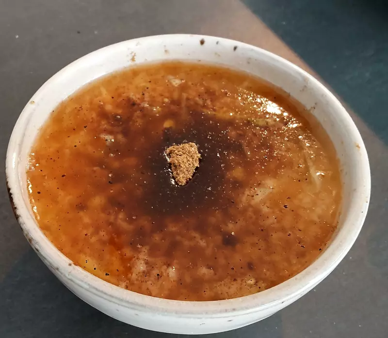 スープがしょっぱすぎる。それに海苔と魚粉。