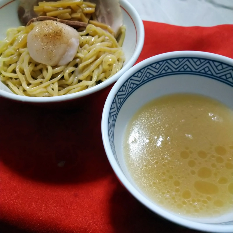 つけスープは塩味がしっかりしながらも、背脂が甘く、トータルで調和の取れたお味でした!