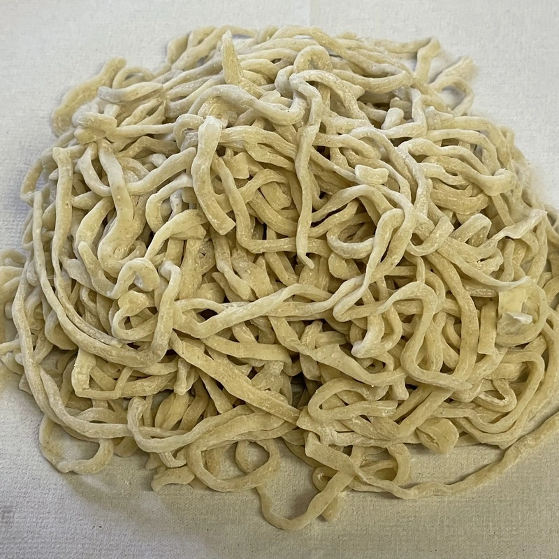 長め(8分)に茹でて柔かくした麺がピロピロしててうまい。個人的に手揉みや手打ちの太麺は柔が好きだけど、茹で時間を好きに調整できるのも良き。