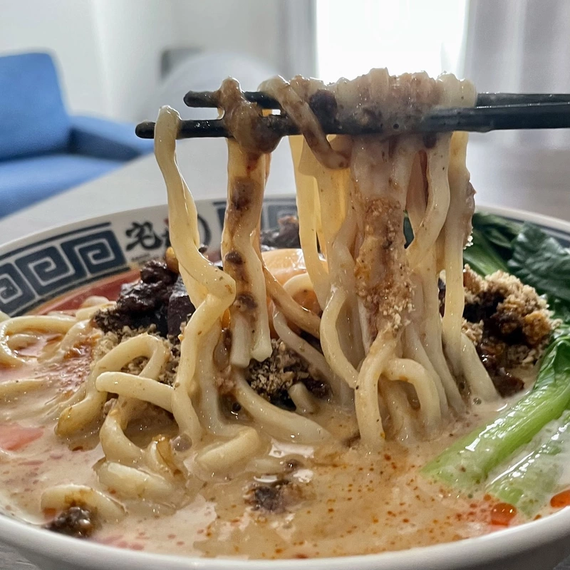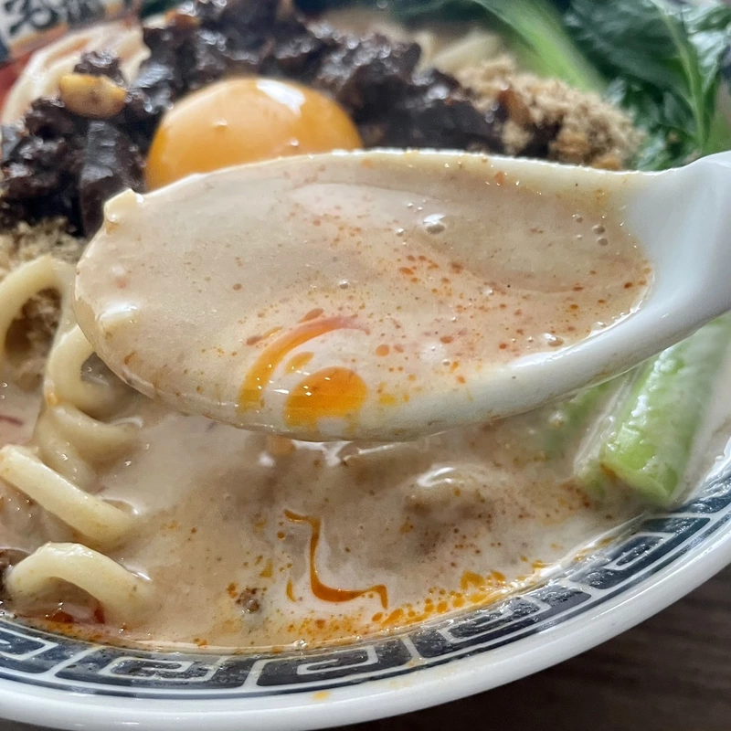 ちばからのド乳化スープがベースなのでメチャクチャコッテリしてるかと思いきや、坦々麺にしては割とあっさりしたスープ。