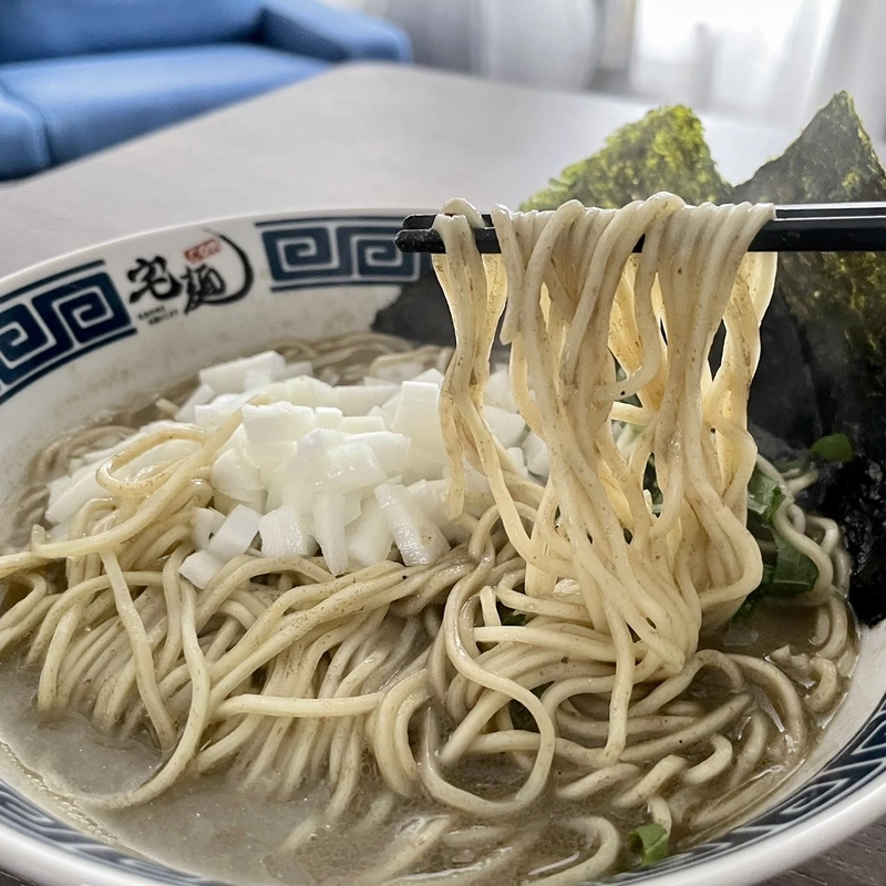 個人的に縮れた麺が好きなので、冷蔵解凍してから麺を強めに手揉みして頂きました。