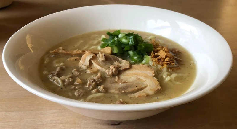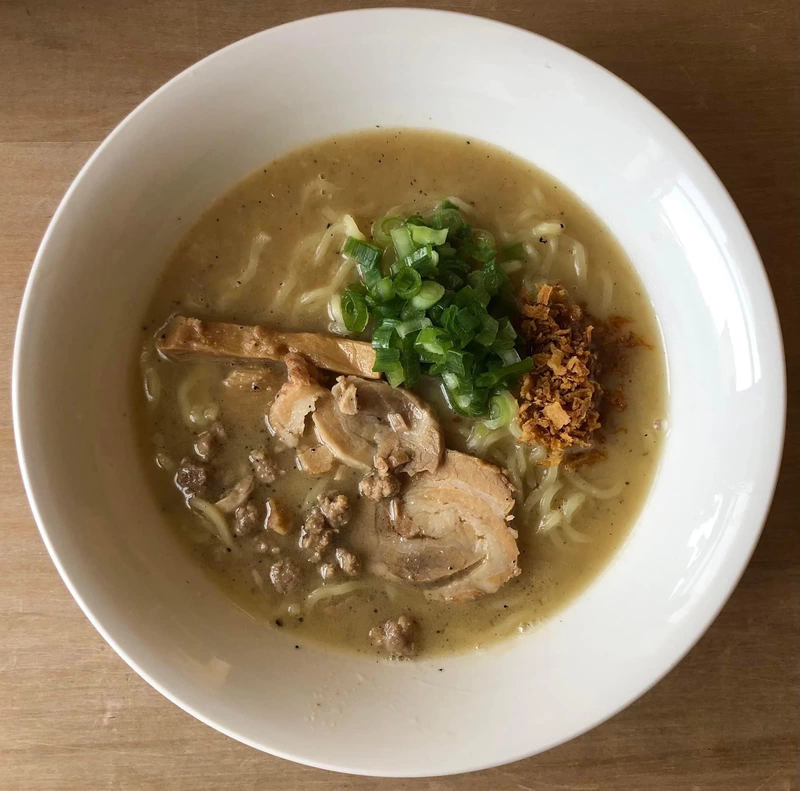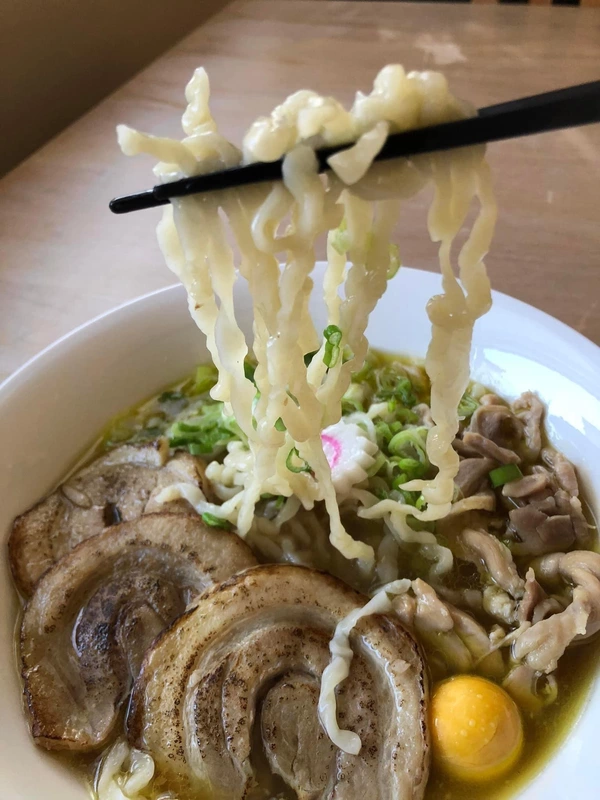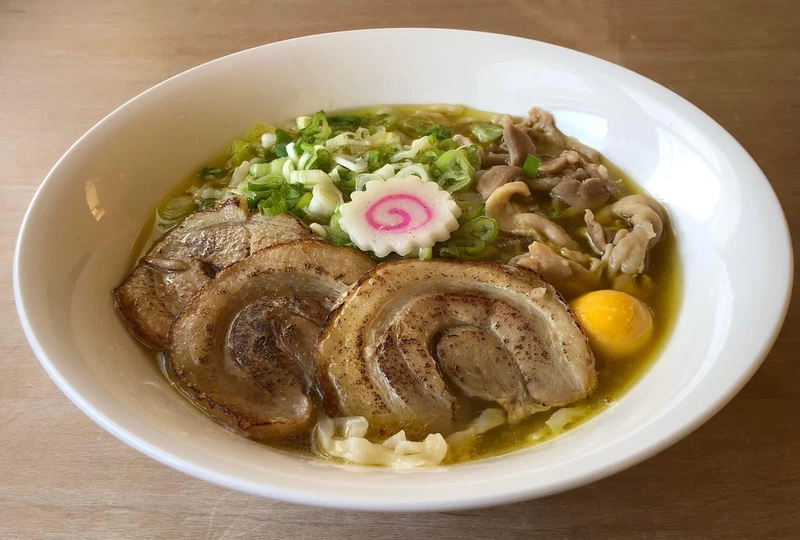 スープは鶏白湯と煮干しに、ラードと焦がしニンニクの香ばしさが合わさった、魚介鶏白湯塩。