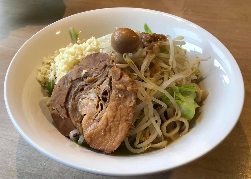 ヤサイアブラマシニンニクマシマシに玉子トッピング(玉子はあえて味付なし)。
