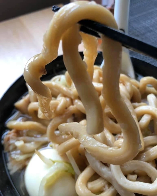 モッチモチのフニフニで、例えると、芯に少しだけコシがある伊勢うどん。