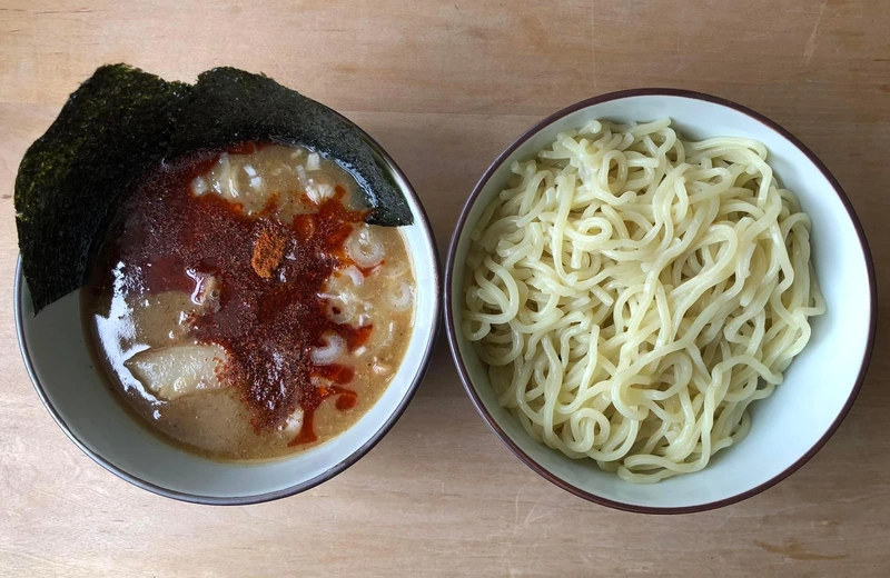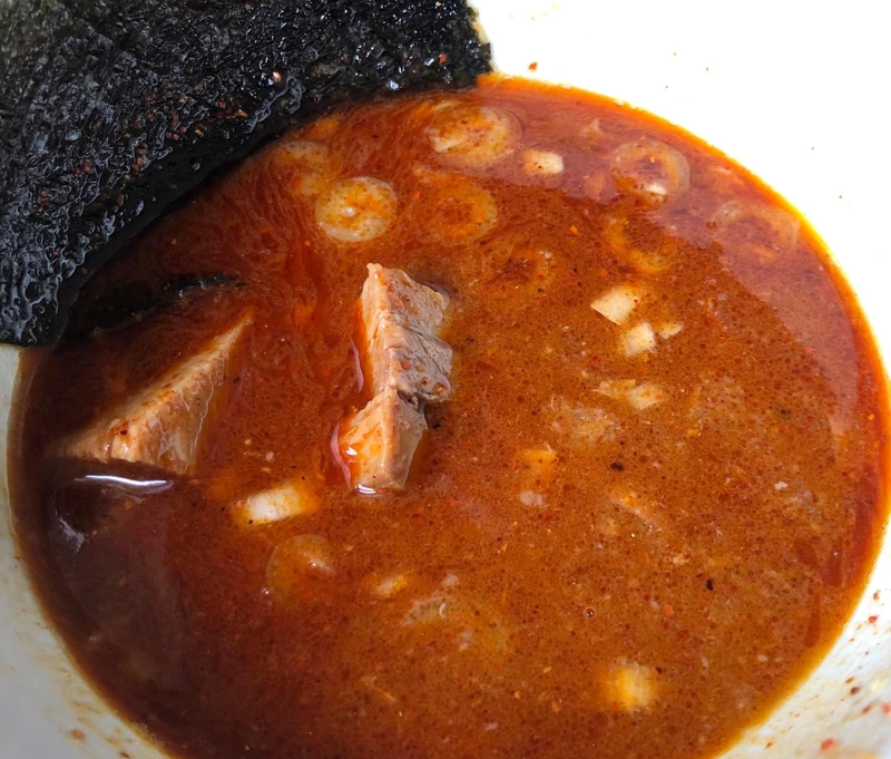 つけ汁は、とみ田のような魚介豚骨ではなく、鶏と魚介の濃厚スープ。
