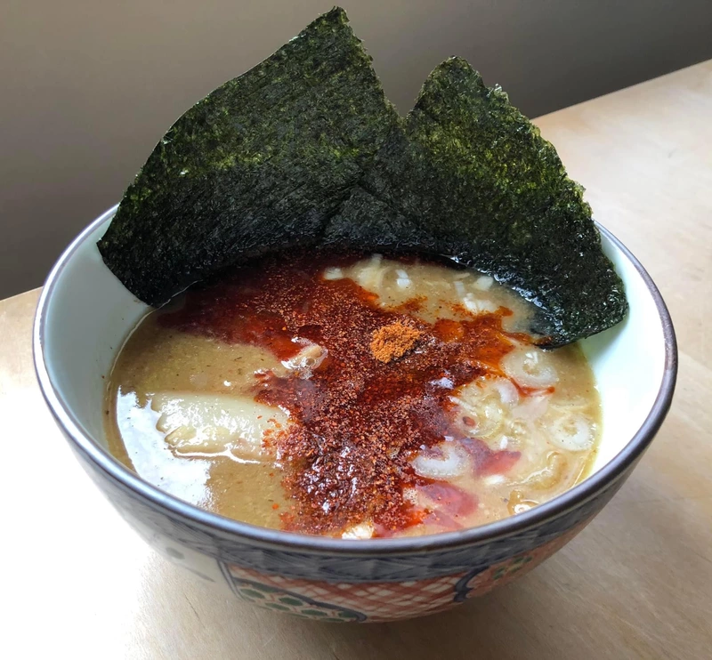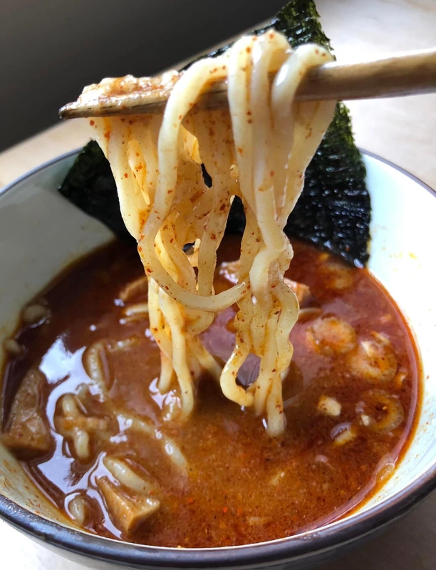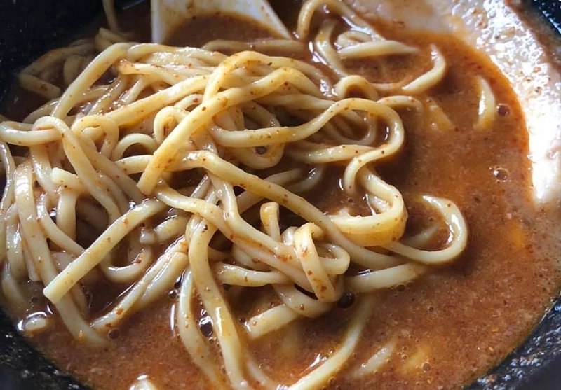 啜りすぎるとむせ込むほど辛いけど、ただ辛いだけじゃない、魚介の旨味たっぷり。