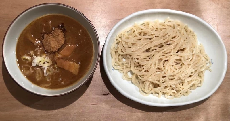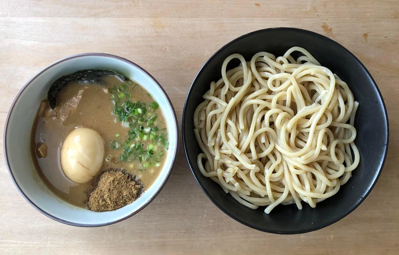 つけ汁は、鶏ガラベースの動物系と魚介系のWスープ。