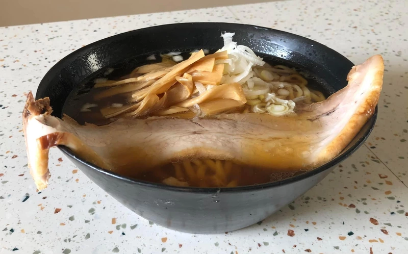 極厚チャーシューの角切りもとても柔らか。これまた美味しい一杯でした。