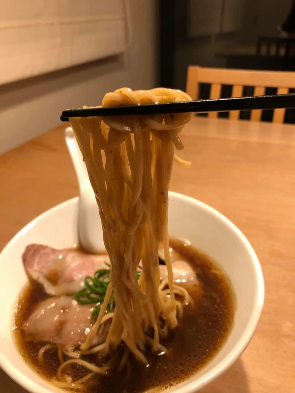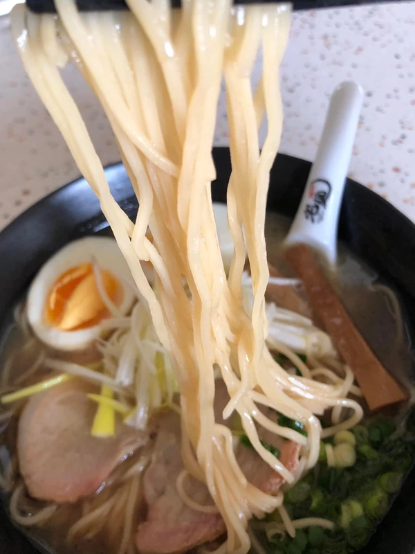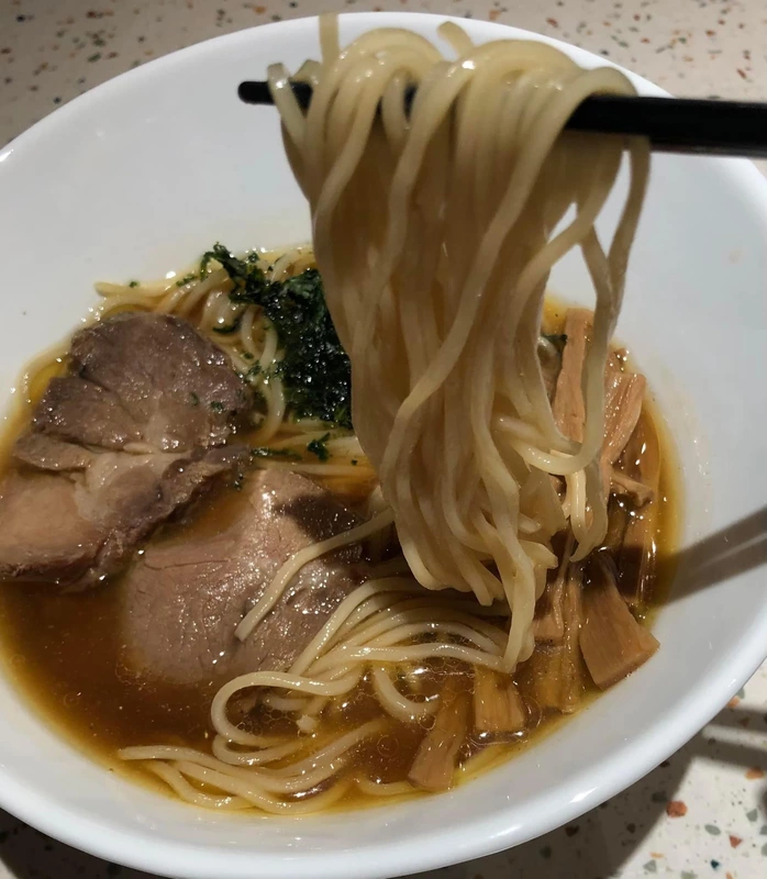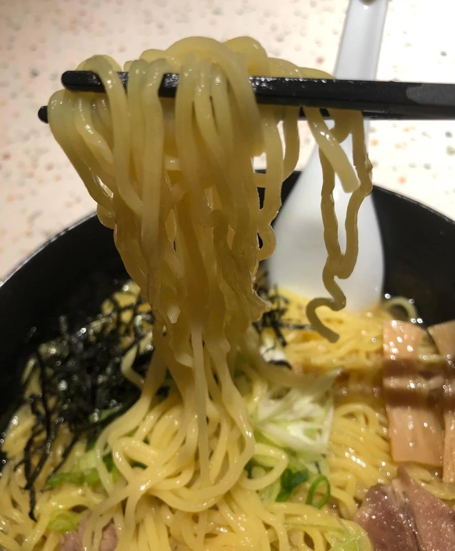 啜りやすいため、麺とスープの風味が勢いよく飛び込んでくるので、淡麗系なのに風味豊かな味になる。
