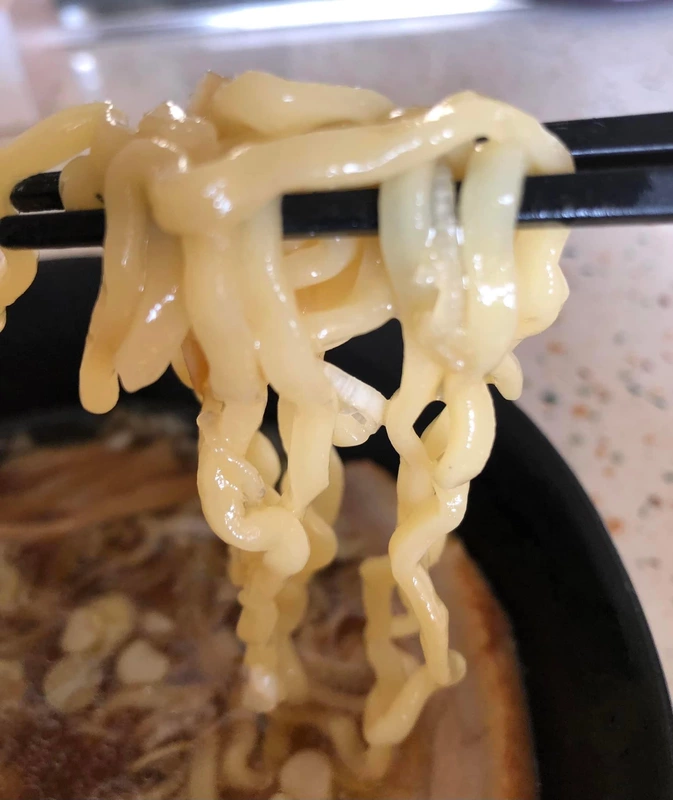 宅麺は、通常冷凍のまま麺を茹でますが、店主のこだわりが強く、この店のは前日から麺を冷蔵庫で解凍してから、短時間で茹で上げるタイプ。