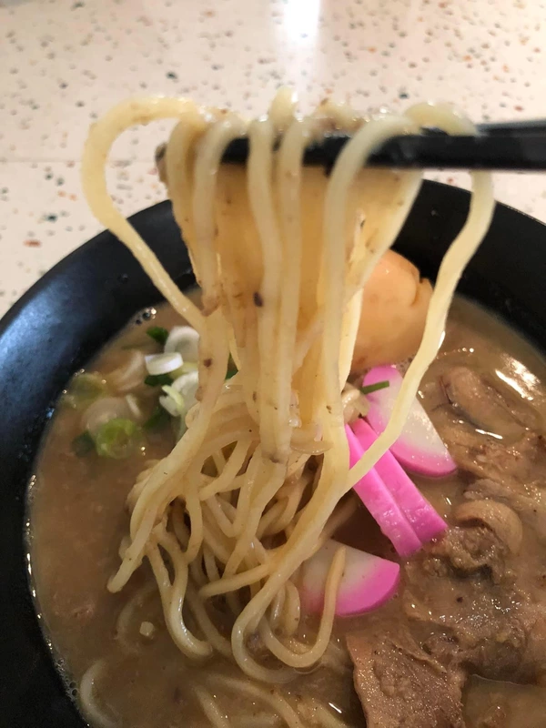 麺(200g)は「キタノカオリ」「春よ恋」「きたほなみ」の北海道産小麦100%を使った縮れ太麺。小麦の風味とツルッツル感がスープに合う。