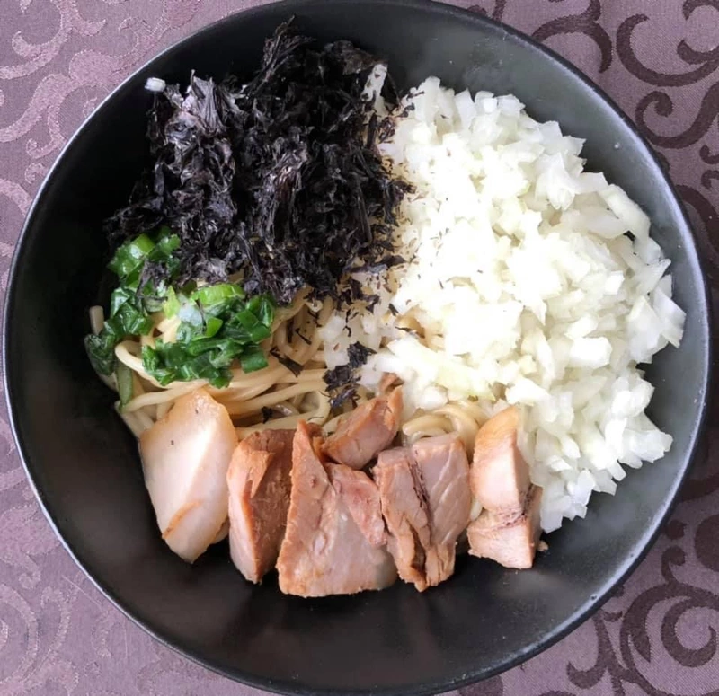 スープは凄い煮干し感で濃厚なコクと旨味。オススメトッピングの玉ねぎ粗みじん切りがアクセントになって美味しい。