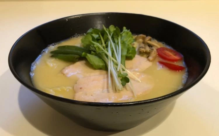 まずはスープ。ポタージュほどの粘度の鶏白湯スープは旨味MAX。誰かに止められない限り、無限飲みできます。