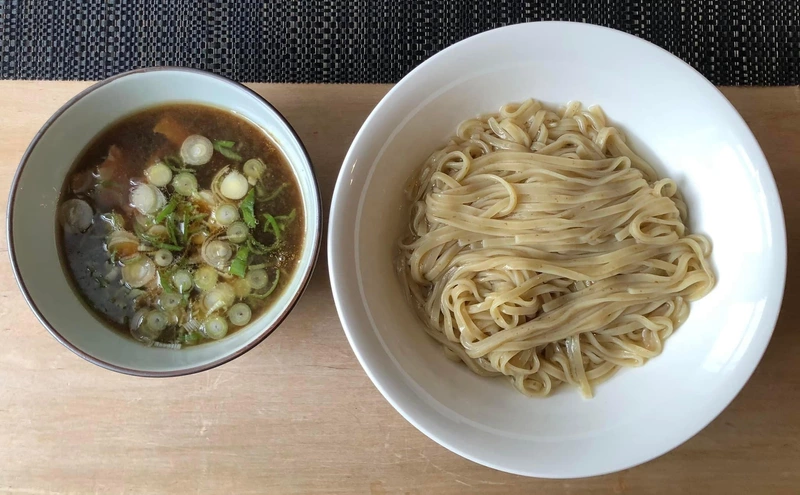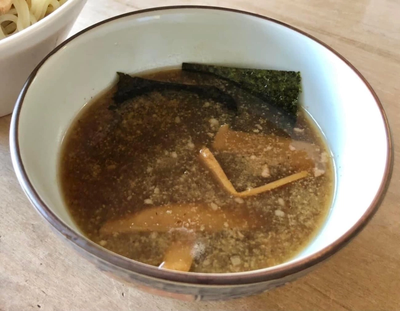 同じ魚介系でも、醤油の風味が強いさらっとしたつけ汁は、甘味と酸味が前面にあり、その奥にかすかに感じるピリ辛。