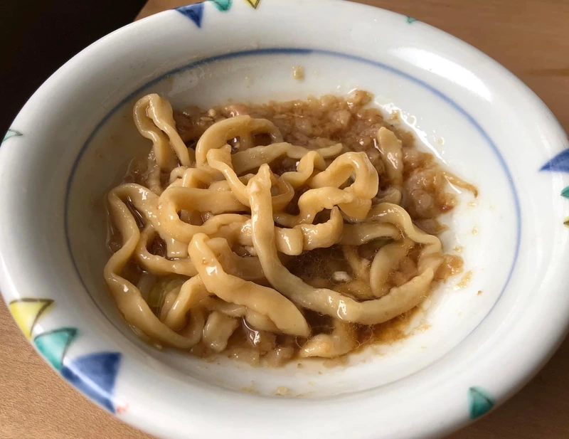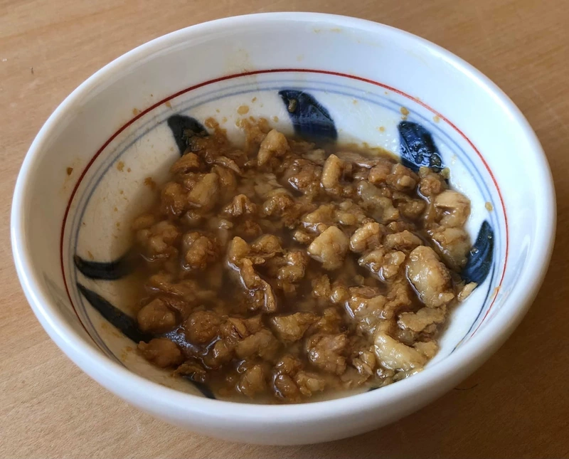 スープは魚介系の濃厚な旨味がありながら、優しめの味わい。中に鶏そぼろがふんだんに入ってる。