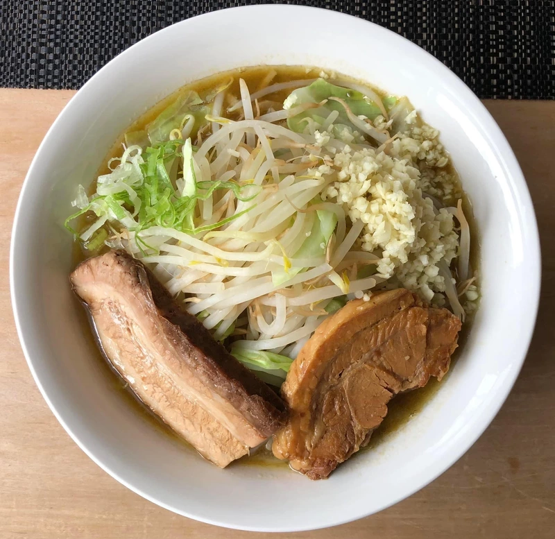 ヤサイニンニクマシでいただきました(アブラはスープに入っているタイプ)。