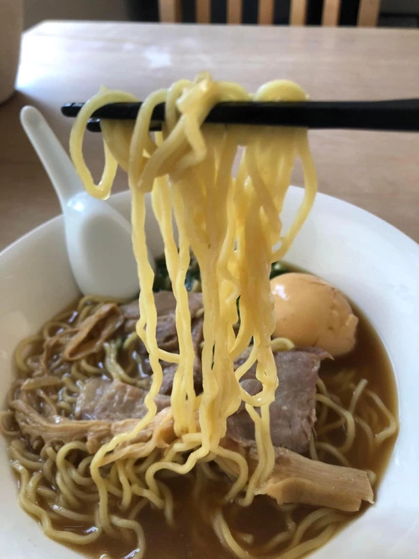 食感もワシワシではなくモチモチで小麦の香りしっかり。モチモチとした食感で、しっかりとスープを持ち上げてくれる。