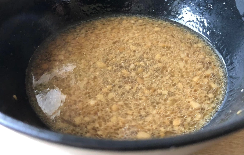 量もしっかり多いスープは、〆の雑炊用に途中で鍋に取り分けて、残ったスープにニンニクとコチュジャンを投入して味変。